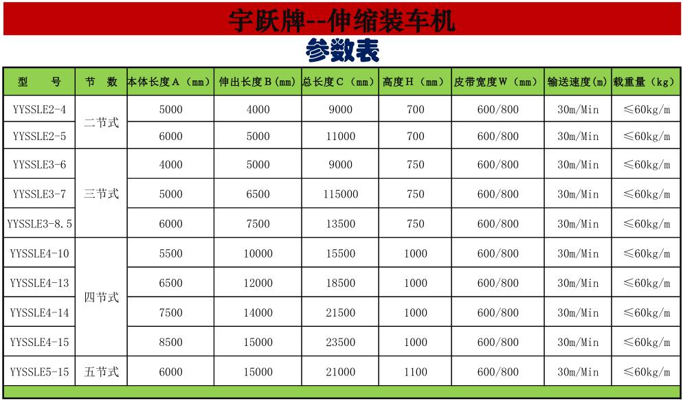 宇跃伸缩机产品选用通用零部件和组台模块配件每个部位部件都为可接触的,为了使您的材料或货物更为流畅的转运。